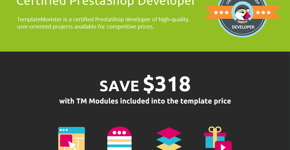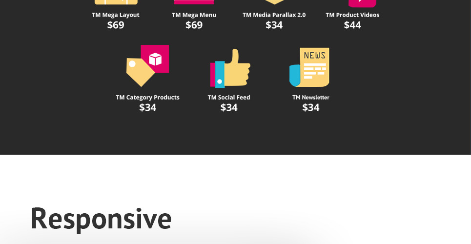 Admin Panel, Blog, Bootstrap, Dropdown Menu, Google map, HTML 5, HTML plus JS, JQuery, MegaMenu, On-line chat, Online Store/Shop, Parallax, Quickstart Package, Responsive, Sample content, Sliced PSD, Tabs |