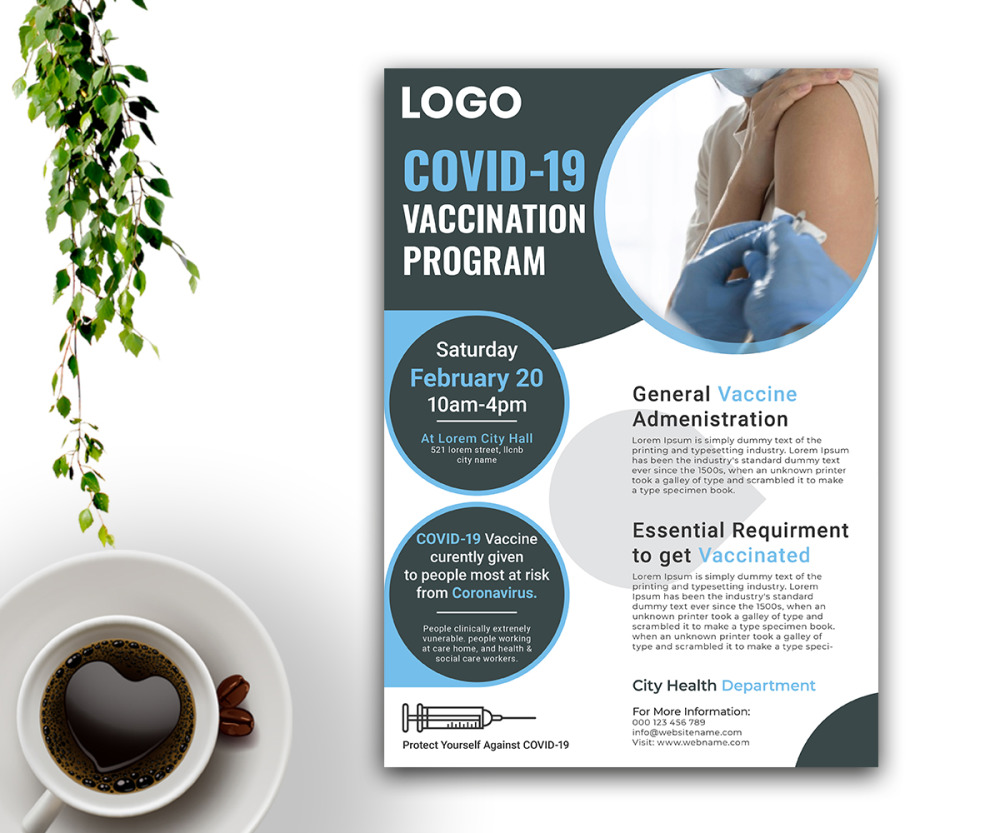 ad, advert, campaign, clinic, coronavirus, doctor, flu, flyer, health, hospital, injection, leaflet, magazine, medical, pamphlet, pandemic, poster, program, swab |
