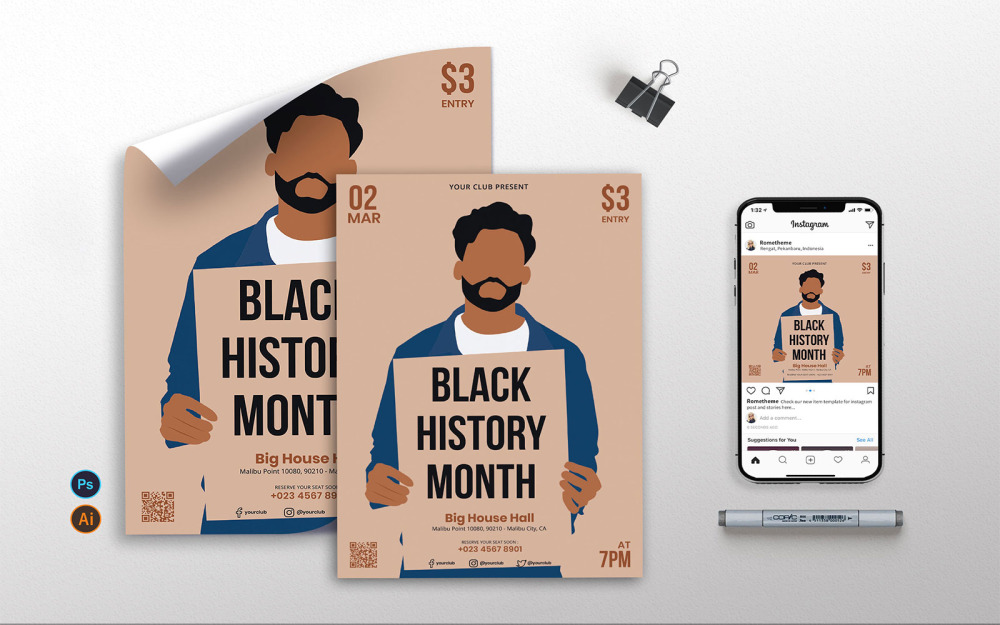 ai, black, black history month, clean, eps, event, flyer, history month, instagram, modern, poster, print, psd, template |