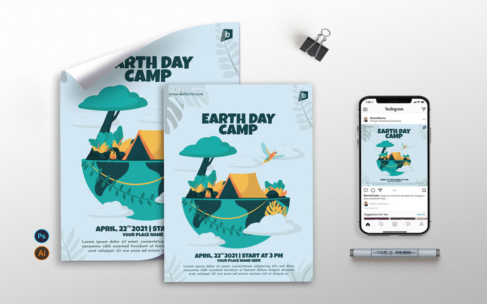 earth, earth day, flyer, illustration, instagram post, nature, poster, print template |