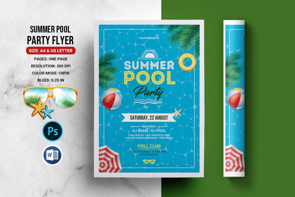 design, ms word, party flyer, party invitation, pool invite, pool party, psd, summer celebration, summer event, summer invitation, summer party, template |