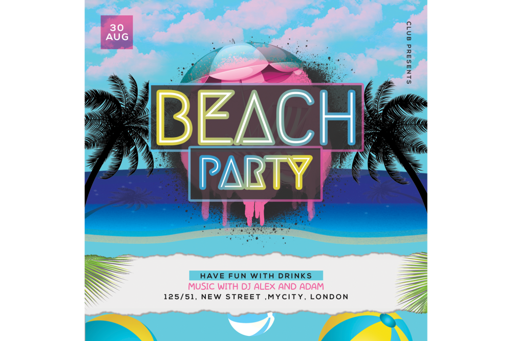 attractive, balls, beack, blue, cloud, flyer, layered, party, sea, tree, water |
