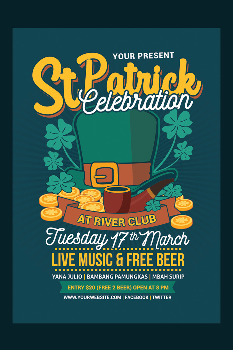 bar, beer, celebration, clover, day, event, fest, festival, gold, green, holiday, invitation, ireland, irish, leprechaun, lucky, party, patrick, post |