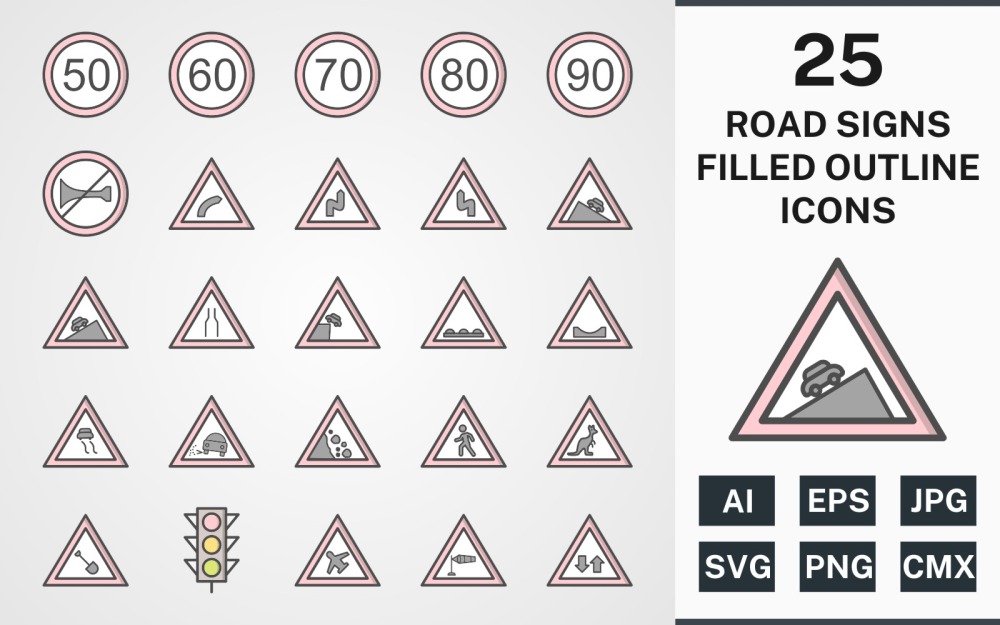 air field, bend, falling rocks, file, filled, pictogram, right, right bend, road signs, round, set, sign, speed limit 70, steep ascent, symbol, two way traffic |