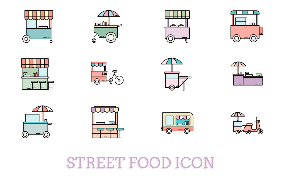 bicycle, drink, food cart, food festival, food stall, food truck, hawker, market, portable, scooter, shop, street food, umbrella, vendor |