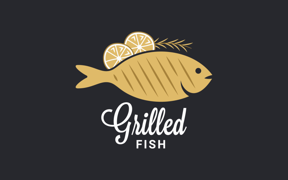 barbecue, barbeque, bbq, cook, eat, element, fish, food, fry, hot, kitchen, lemon, logo, meat, menu, ocean, restaurant, salmon, sea, seafood |