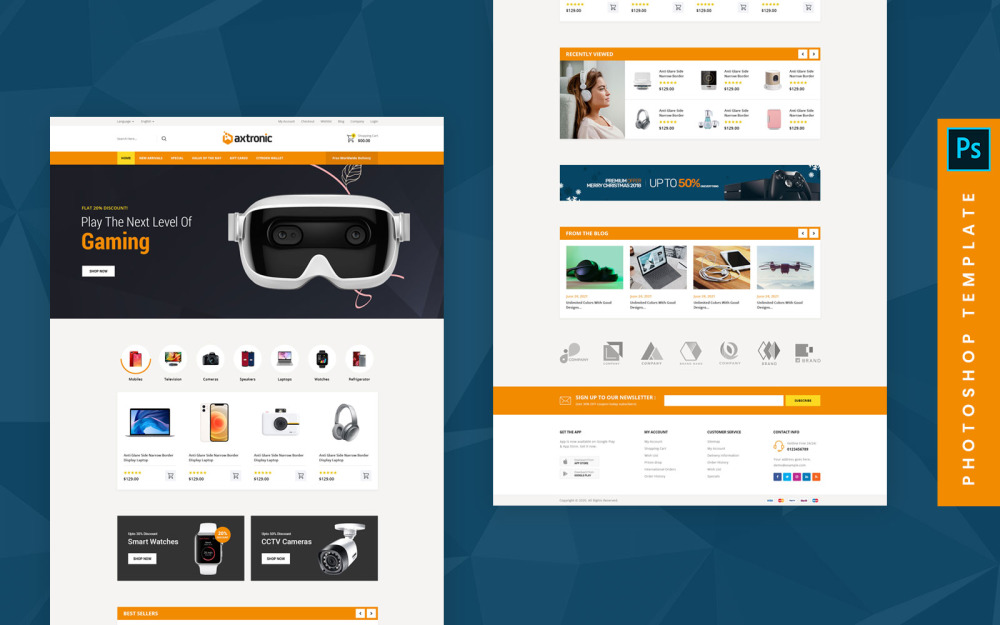clean, ecommerce, electronic-store, electronics, horizontal menu, megastore, modern, online shop, photoshop psd, retail, store |