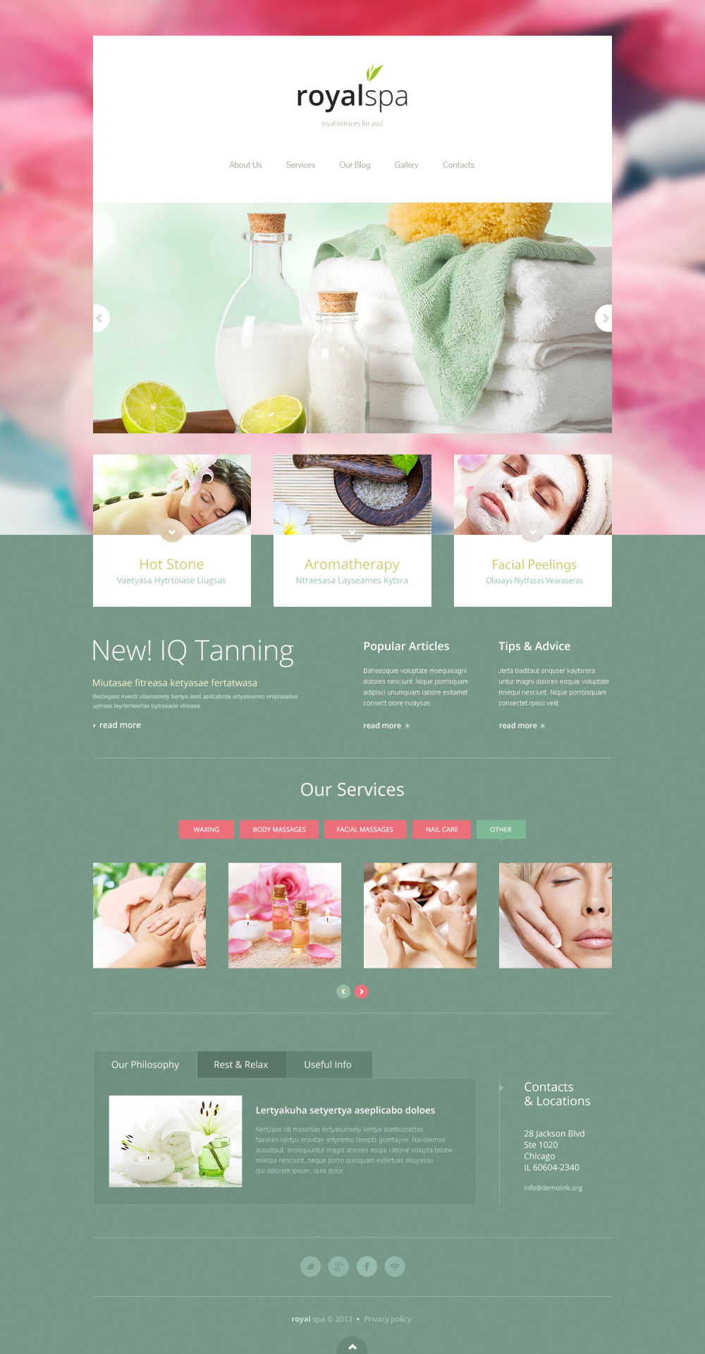 The template will be good for spa salon, spa accessories shop, massage salon and other to represent them on the web. |