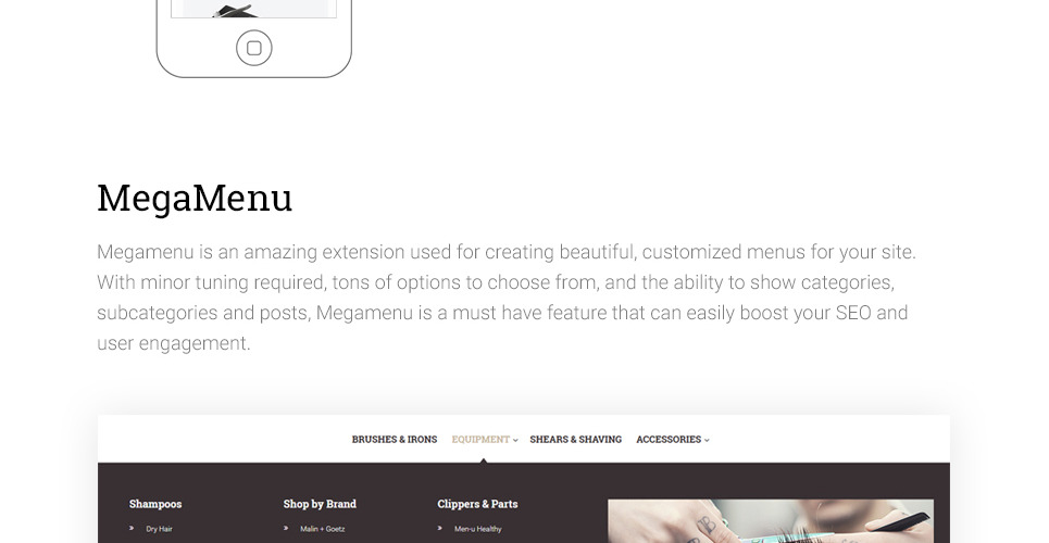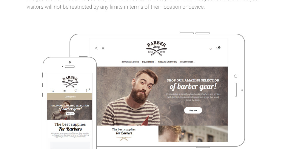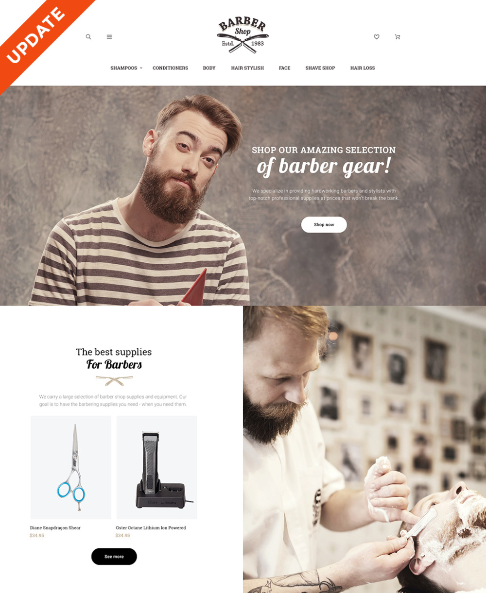 This theme is custom-made for haircare, hairdo, barber shop, barber equipment, shears & shaving, barber shop accessories, and hair salon websites. |