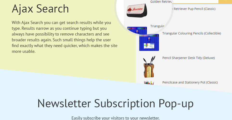 Advanced Search, Contact Form, Login Form, Newsletter Subscription, User Registration |