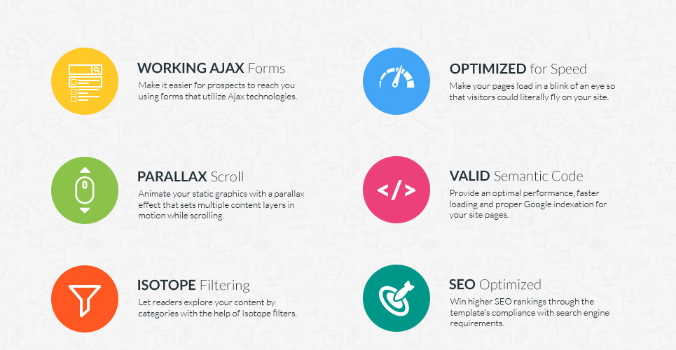 Bootstrap, Dropdown Menu, Google map, HTML 5, HTML plus JS, JQuery, Parallax, Responsive, Retina Ready, Sliced PSD, Tabs |