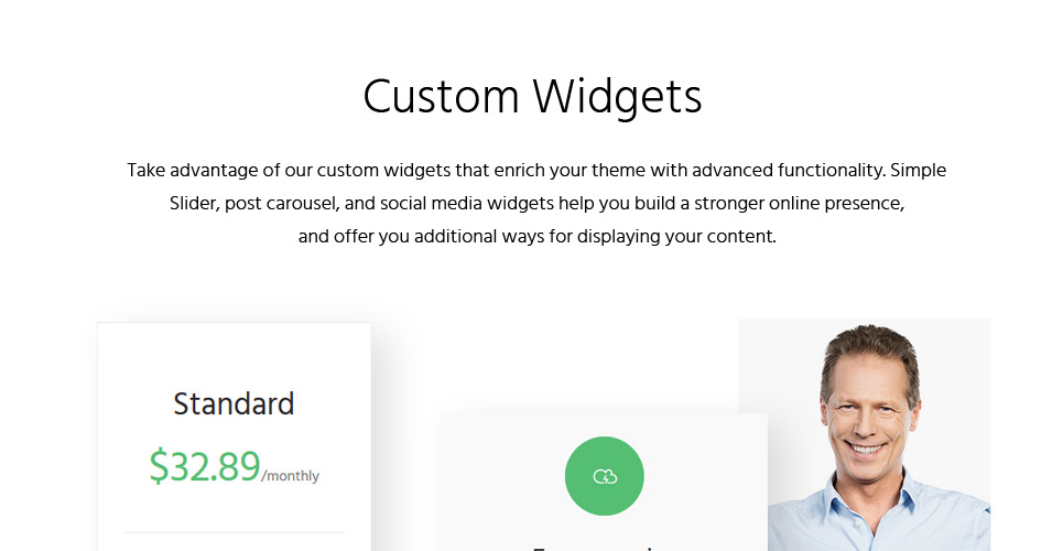 The theme fits for IT consulting, consulting business, finance business, investments, consultancy, brokerage, insurance, trading, business and services, realtor, medical, design and photography, cars and motorcycles sites. |