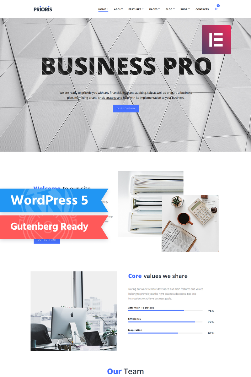 Admin Panel, Responsive, Retina Ready, Search Engine Friendly, Team Members |
