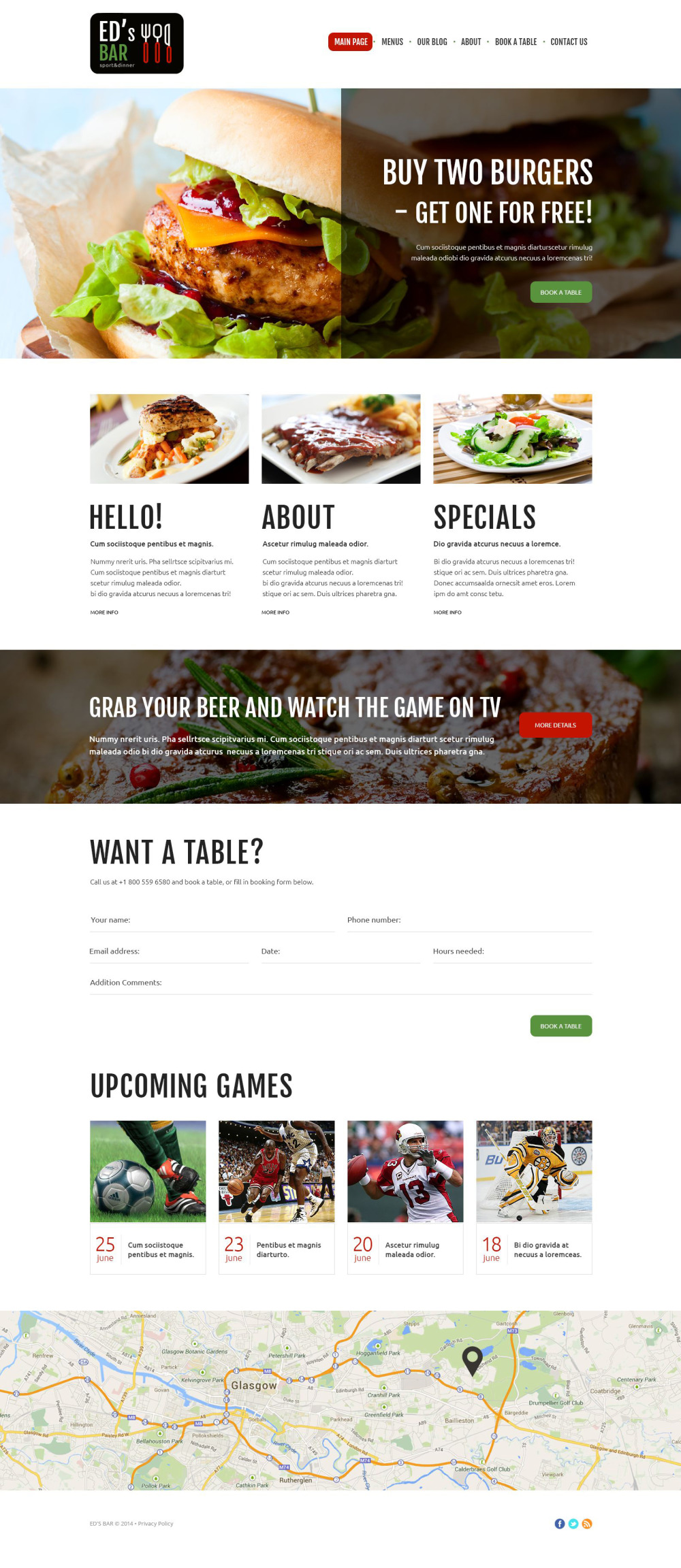 The template is best for online sport bars, cafe and restaurant websites. |