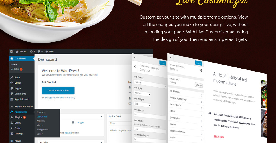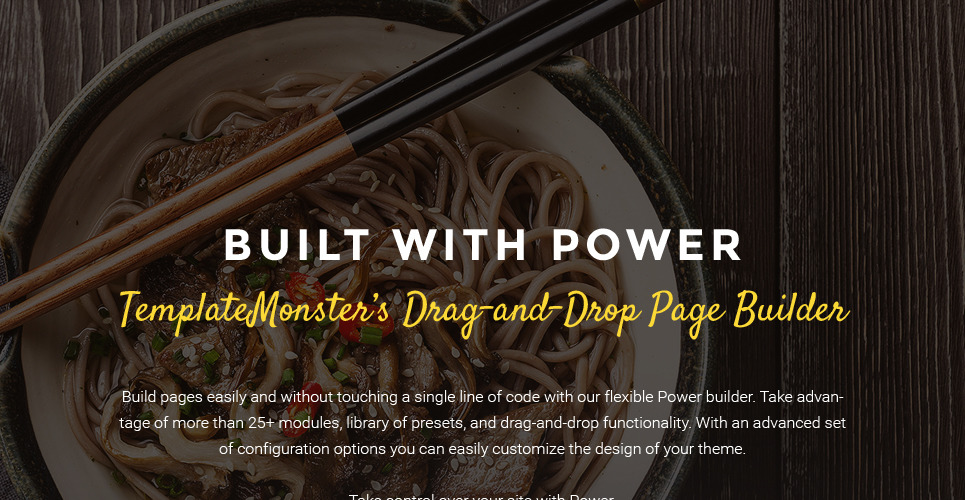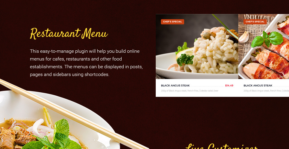 The theme fits for food & beverages as well as cafe & restaurant websites, but is especially good for Asian restaurants. |