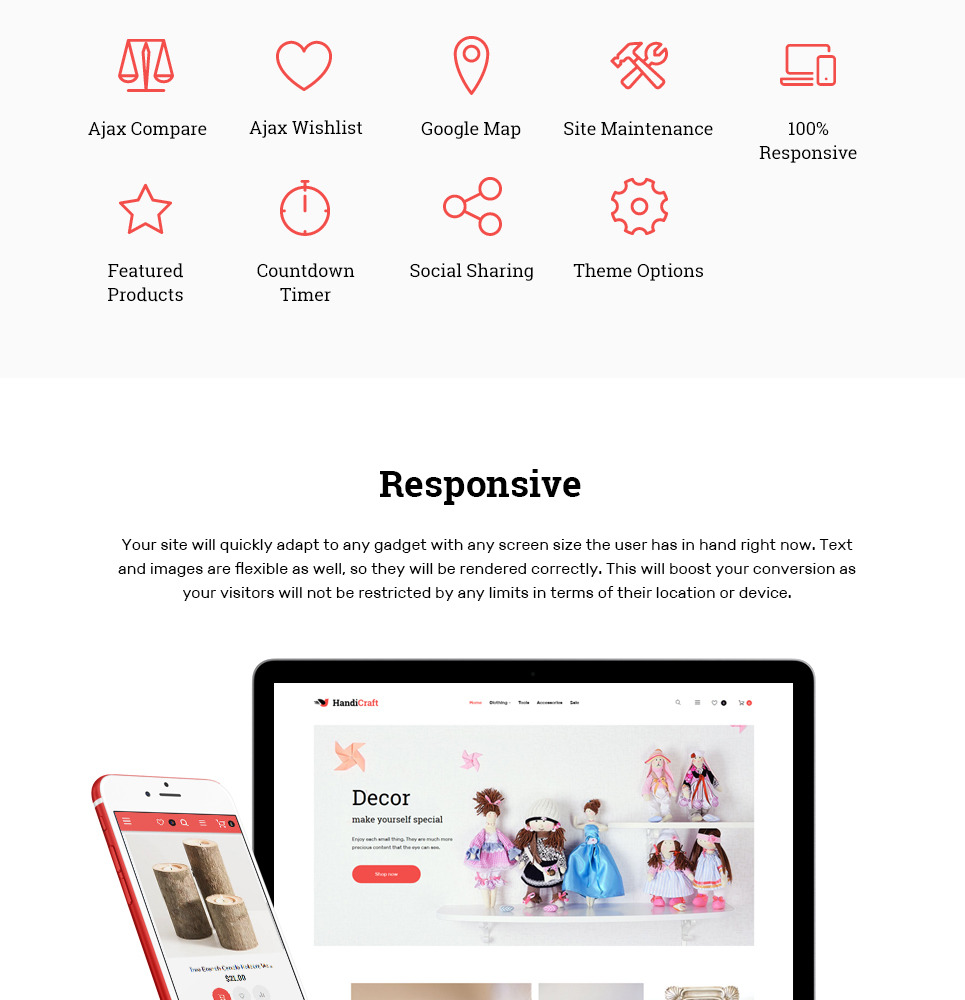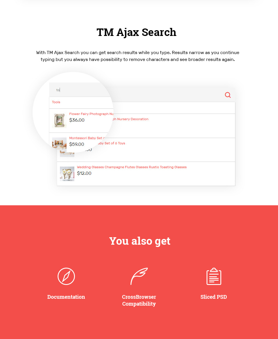 Admin Panel, Ajax, Dropdown Menu, HTML 5, HTML plus JS, JQuery, Online Store/Shop, Performance Optimization, Responsive, Retina Ready, Sample content, Search Engine Friendly, Sliced PSD |