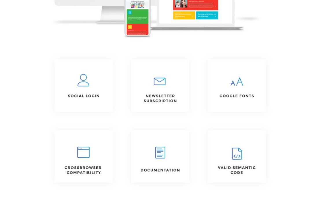Advanced Theme Options, Alternative Module Layouts, Back To Top Button, Commenting System, Crossbrowser Compatibility, Dropdown Menu, Favicon, Google map, Google Web Fonts, Modules Bundle Install, Quickstart Package, Sample content, Sliced PSD, Social Options, Sortable Gallery, Tooltips |