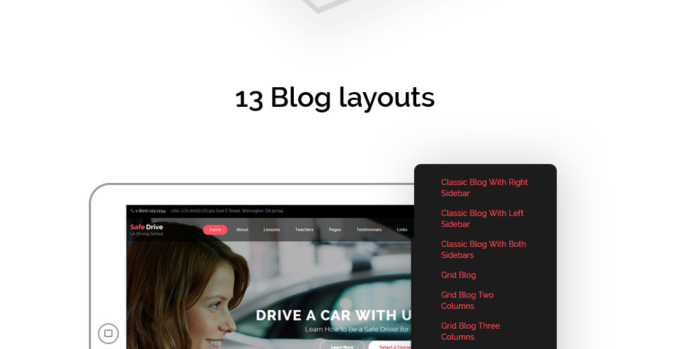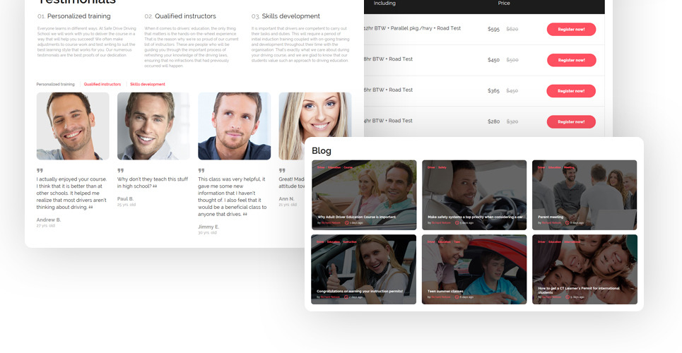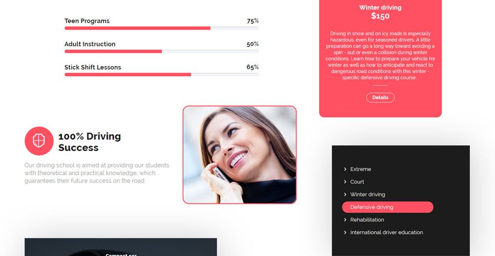This template is custom-made for traffic schools, driving education, business & services, society & people, sports, outdoors & travel websites. |