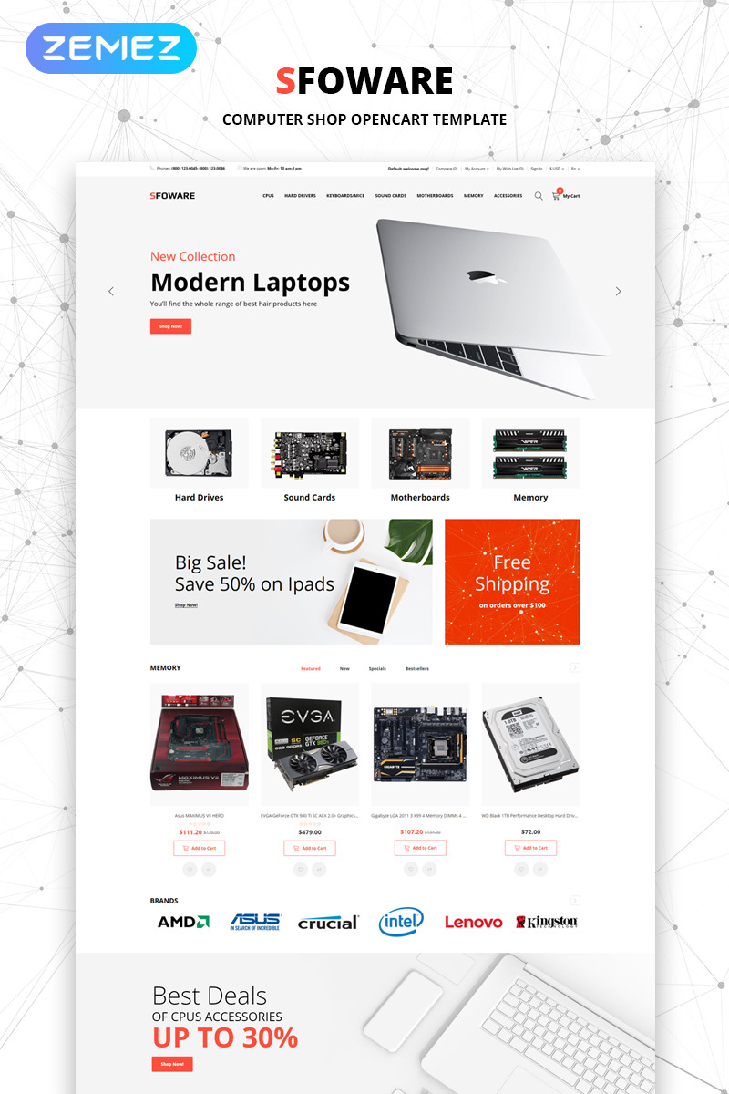 accessories, ecommerce, hardware, laptop, memory, Opencart, pc, shop, smartphone, store, tablet |