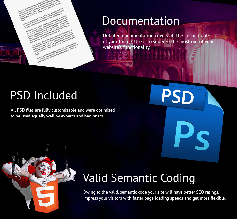 Use this theme for circus and theater websites. |
