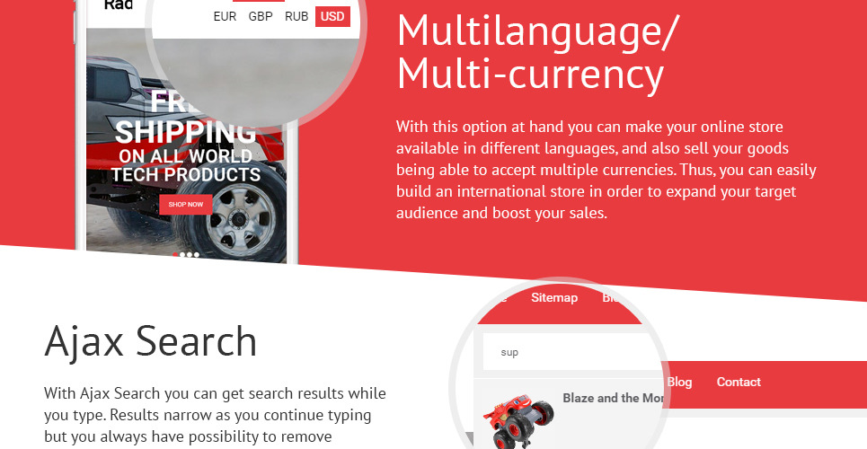 Admin Panel, Blog, Bootstrap, Dropdown Menu, Google map, HTML 5, HTML plus JS, JQuery, Mobile Layout Included, On-line chat, Online Store/Shop, Parallax, Responsive, Sliced PSD |