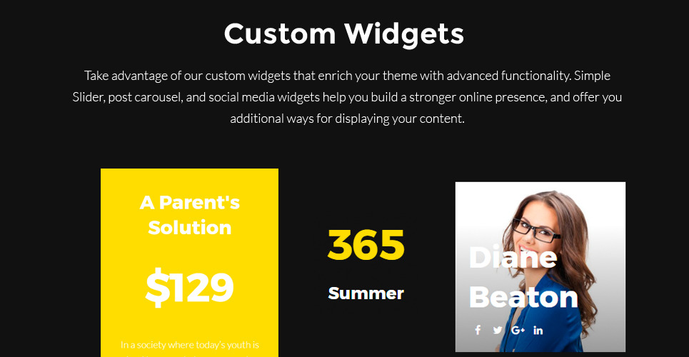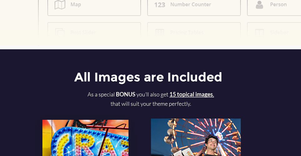 Admin Panel, Blog, Dropdown Menu, Events Calendar, Gallery, Google map, Performance Optimization, Power Page Builder, Responsive, Retina Ready, Sample content, Search Engine Friendly, Team Members |