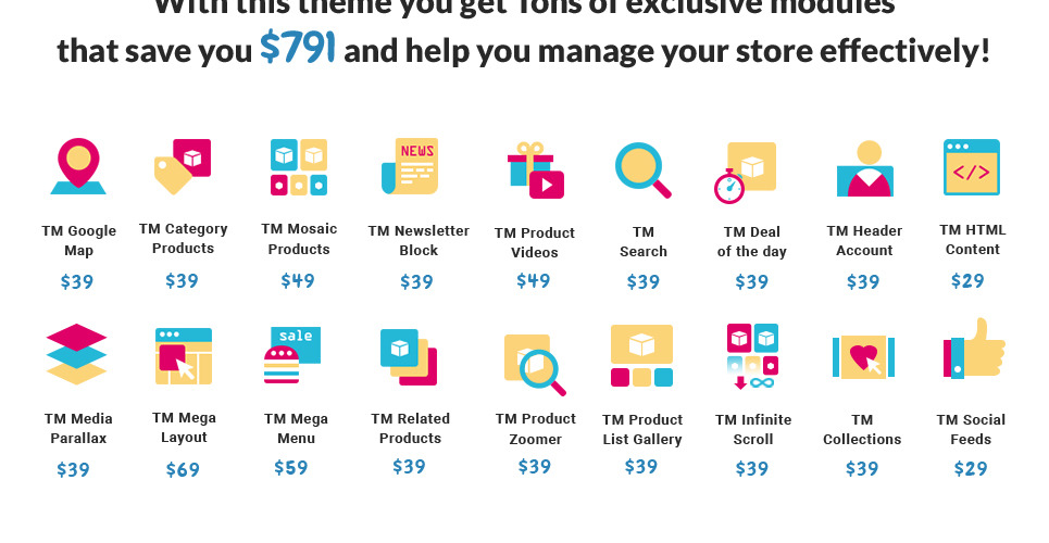 Admin Panel, Blog, Bootstrap, Dropdown Menu, Google map, HTML 5, HTML plus JS, JQuery, MegaMenu, On-line chat, Online Store/Shop, Parallax, Quickstart Package, Responsive, Sample content, Sliced PSD, Tabs |