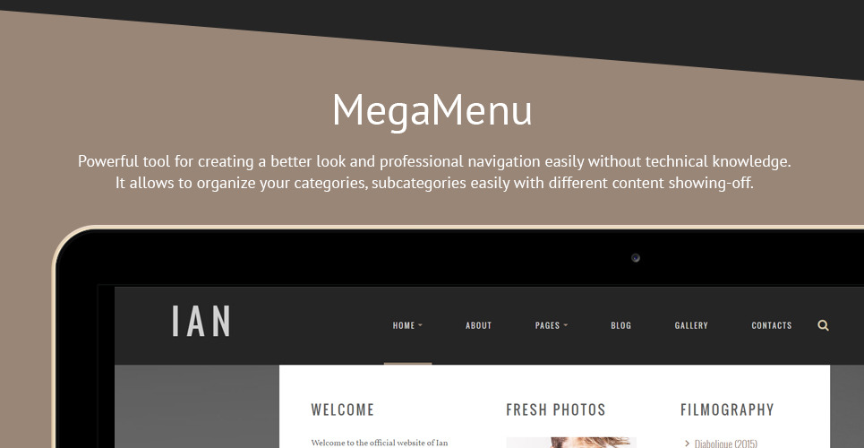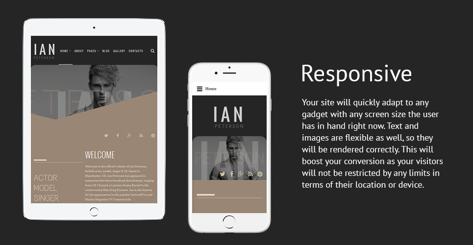 Use this template for a personal page of an actor, model, photographer or any other artist. |