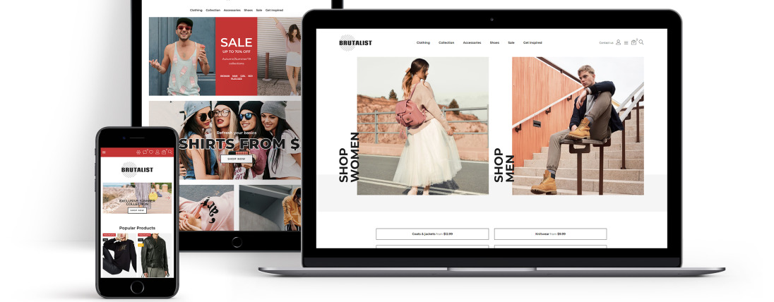 accessories, apparel, brutalist, clothing, coats, collection, dress, ecommerce, fashion, hat, jacket, men, one, shoes, skirts, suits, tops, women |