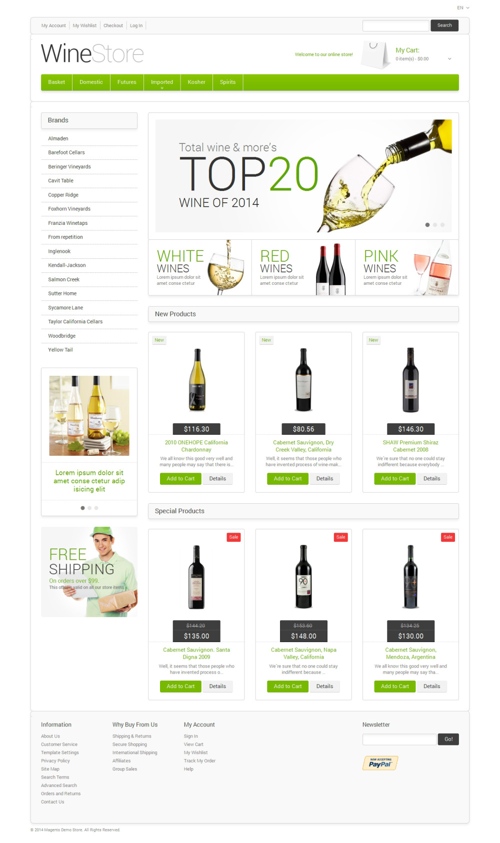 Our magento themes are designed to be used with clean install without sample data that is provided with the default theme.