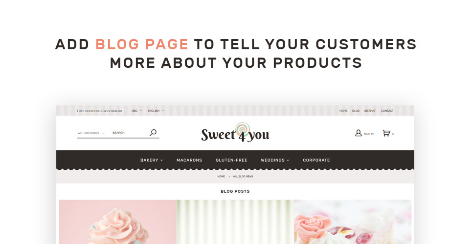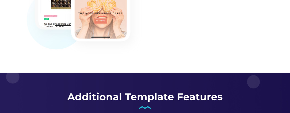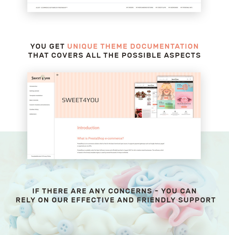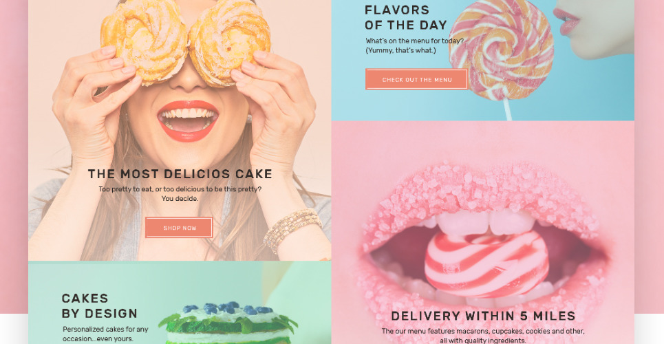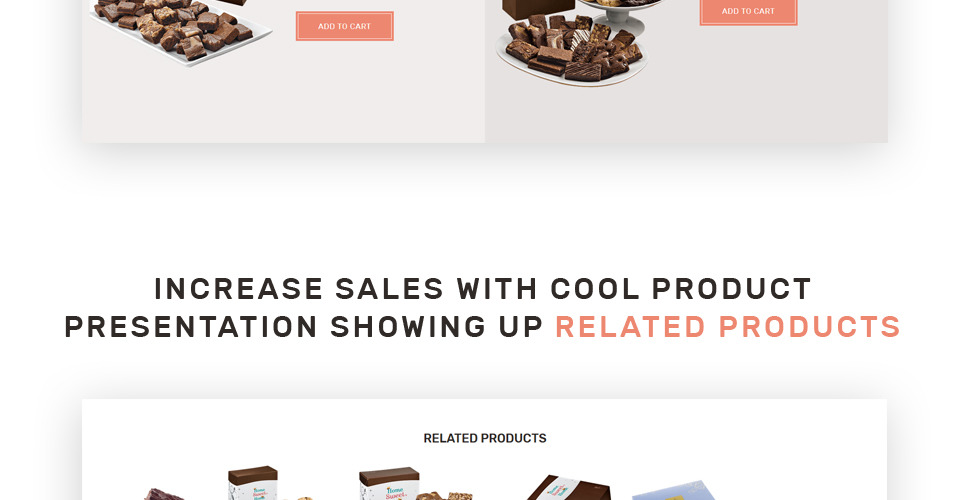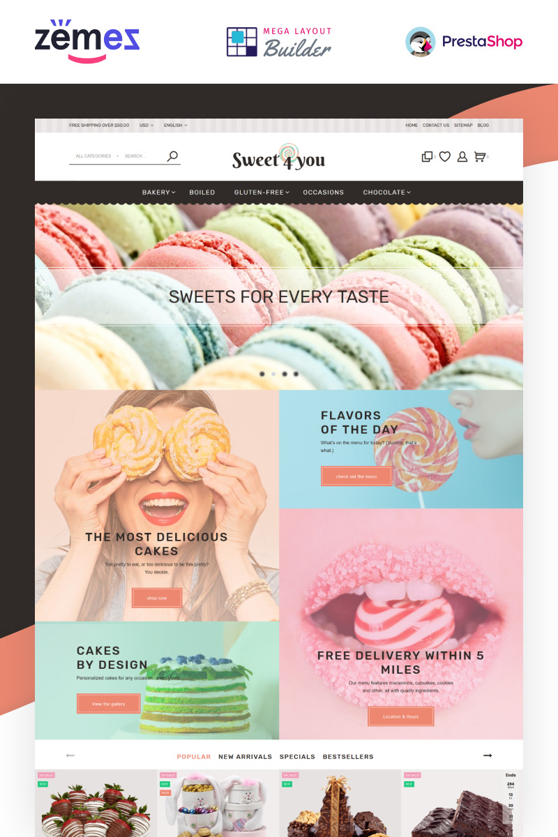 The template is a perfect solution for candy, cake and chocolate online shops. |