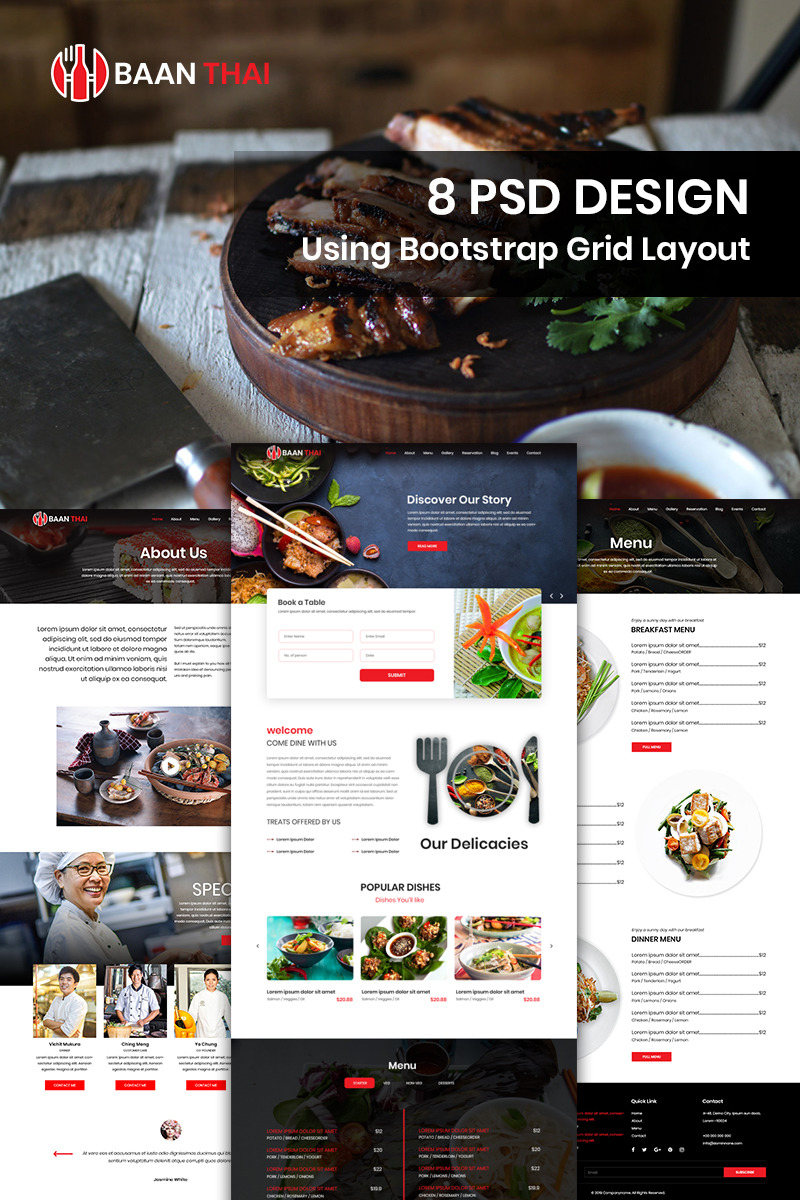 drinks, food, photoshop, psd, restaurant, template, thai, theme |