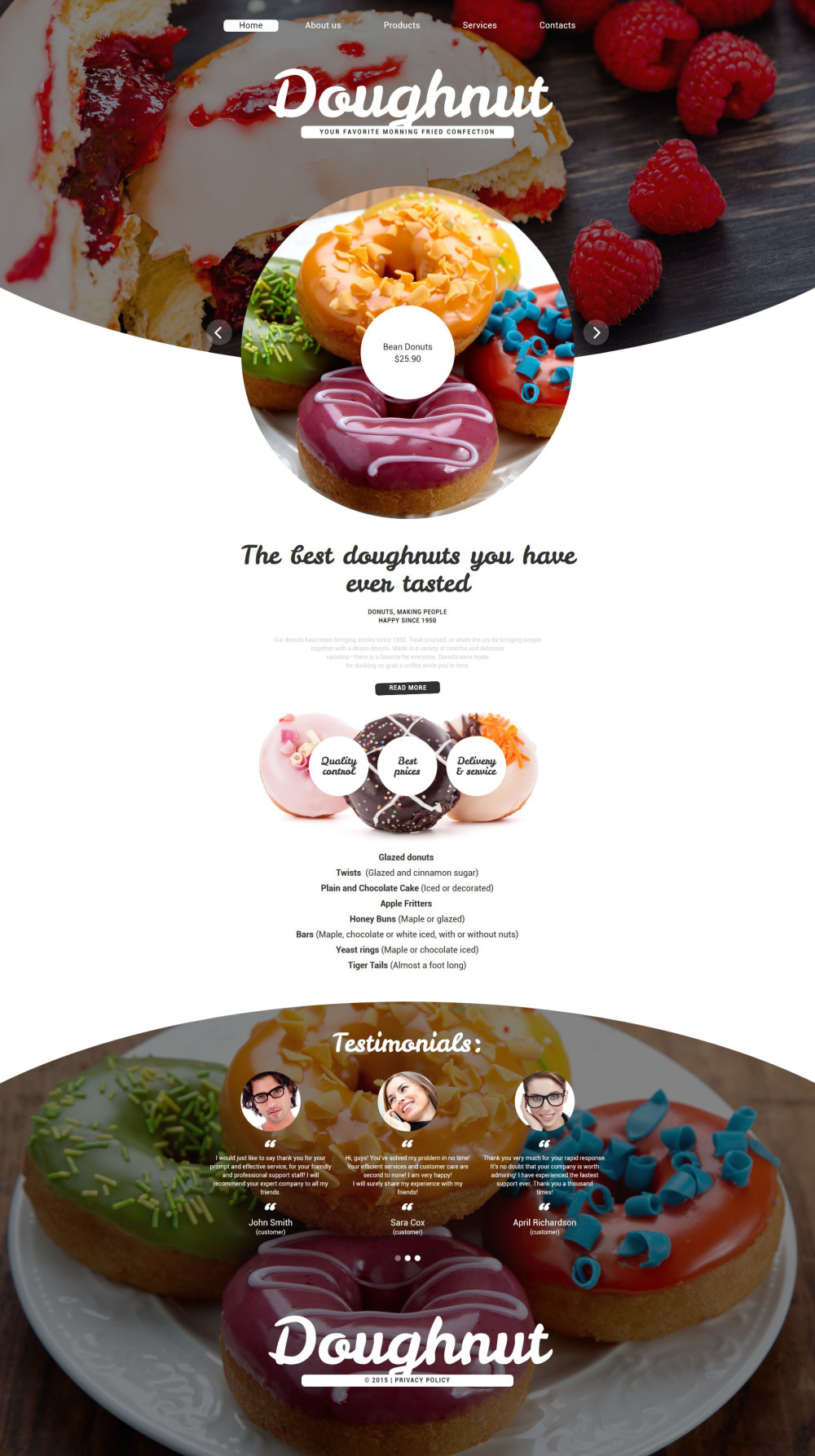 The theme is intended for bakery, food and drink, cafe and restaurant websites. |