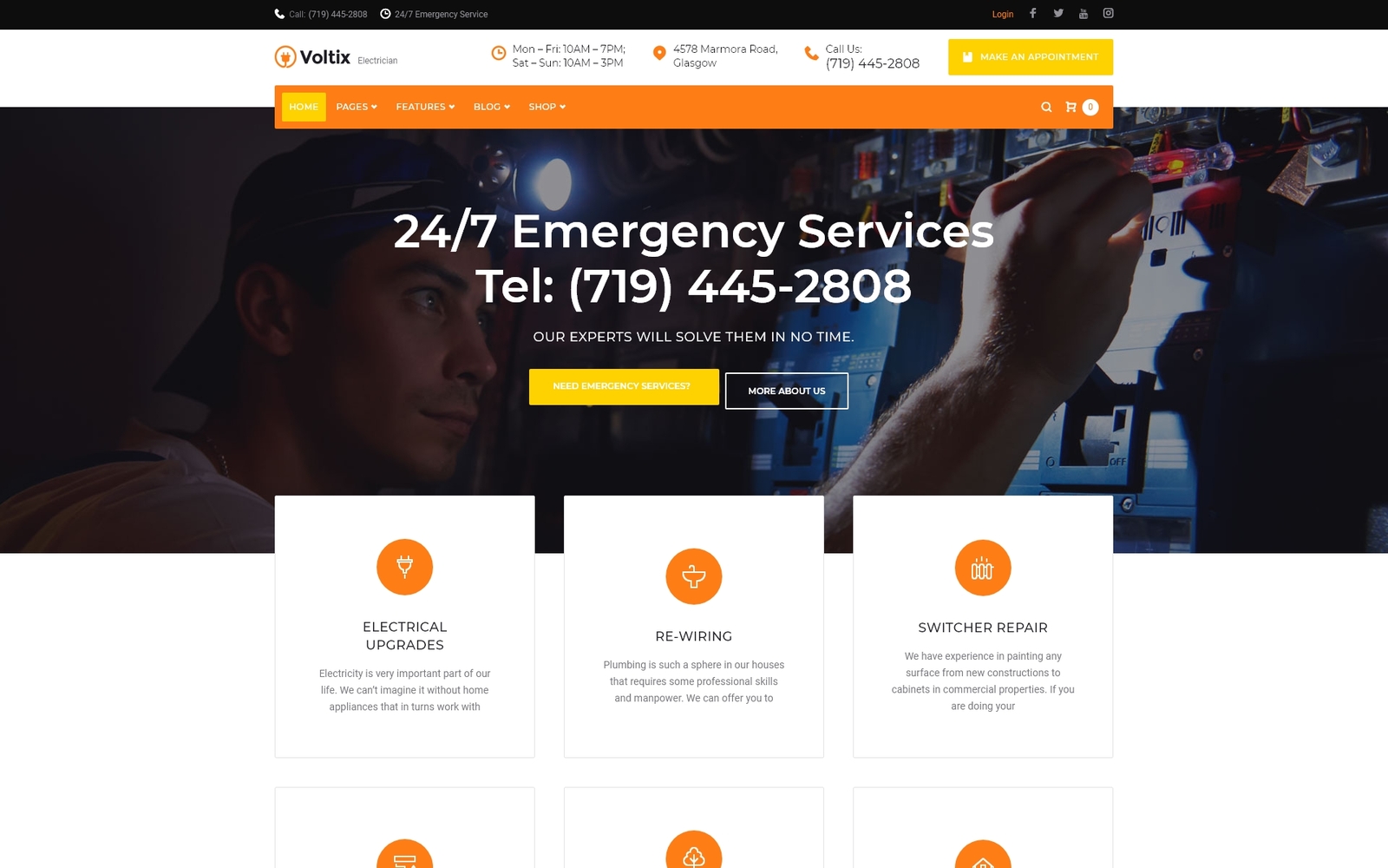business, construction, electric, electrician, electricity services, engineering, handyman, maintenance, production, repair, wordpress theme |