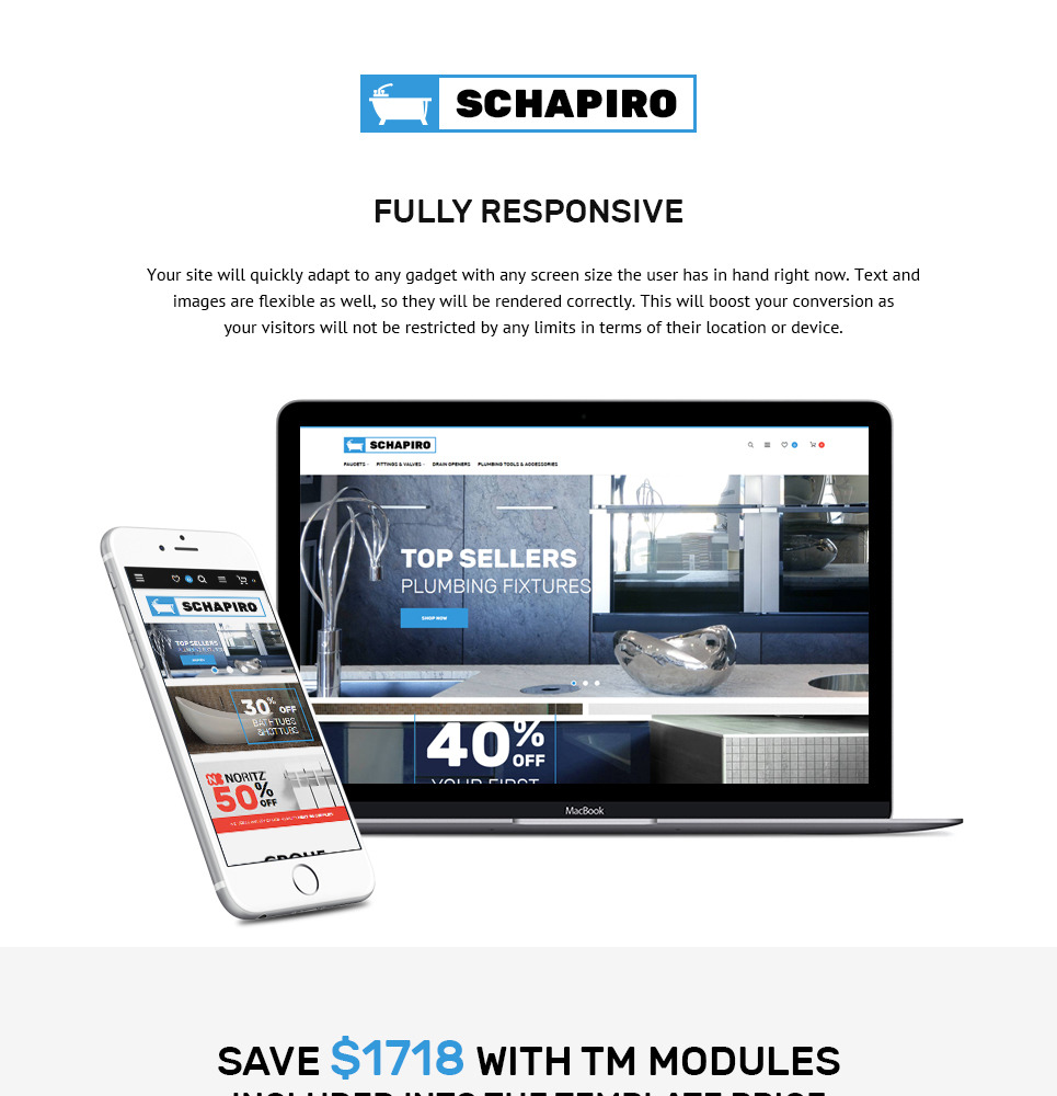 The template is a great match for plumbing supplies, plumbing tools, business and services, home and family, fashion and beauty, electronics, design and photography, computers and internet websites. |