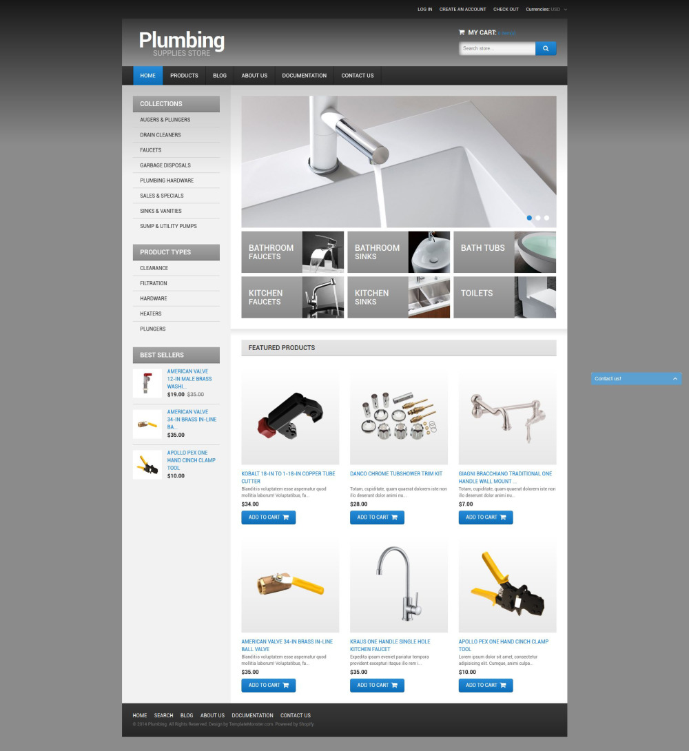 The template was designed for online plumbing, flooring and interior product stores. |