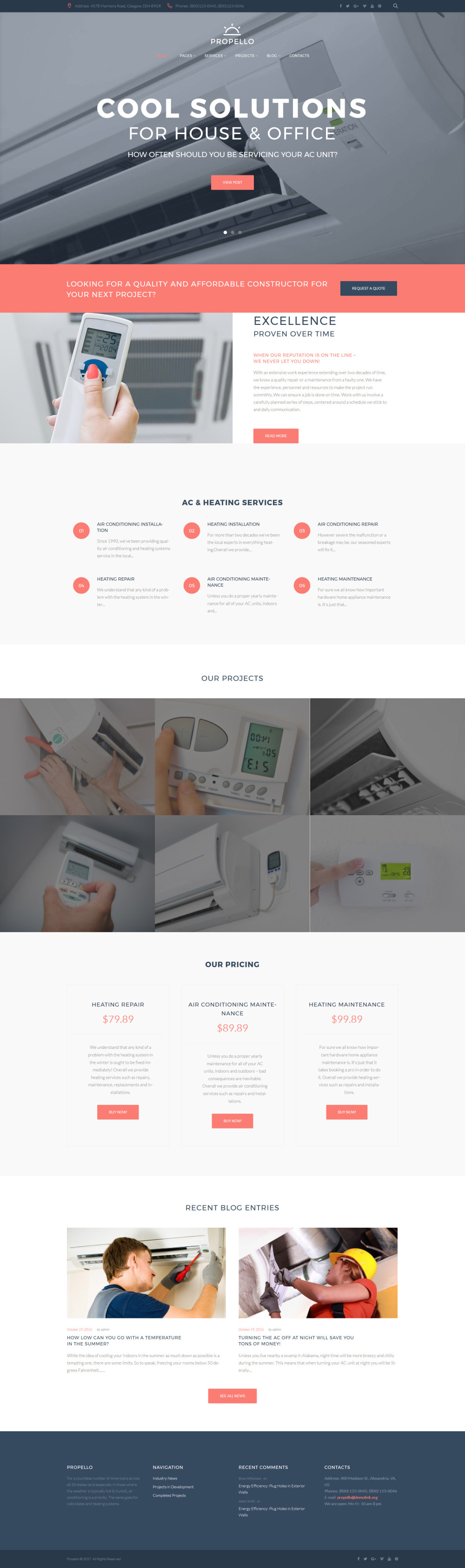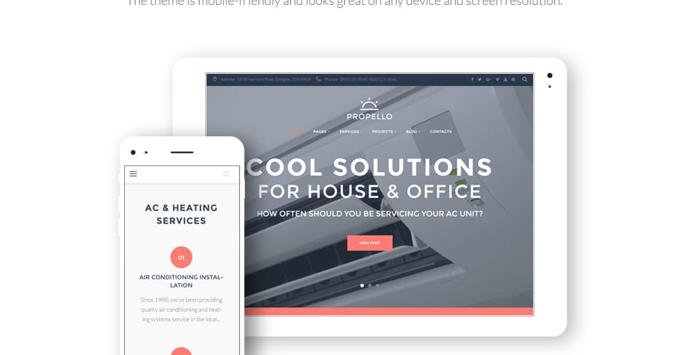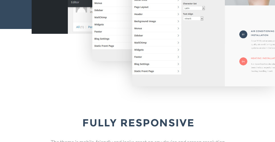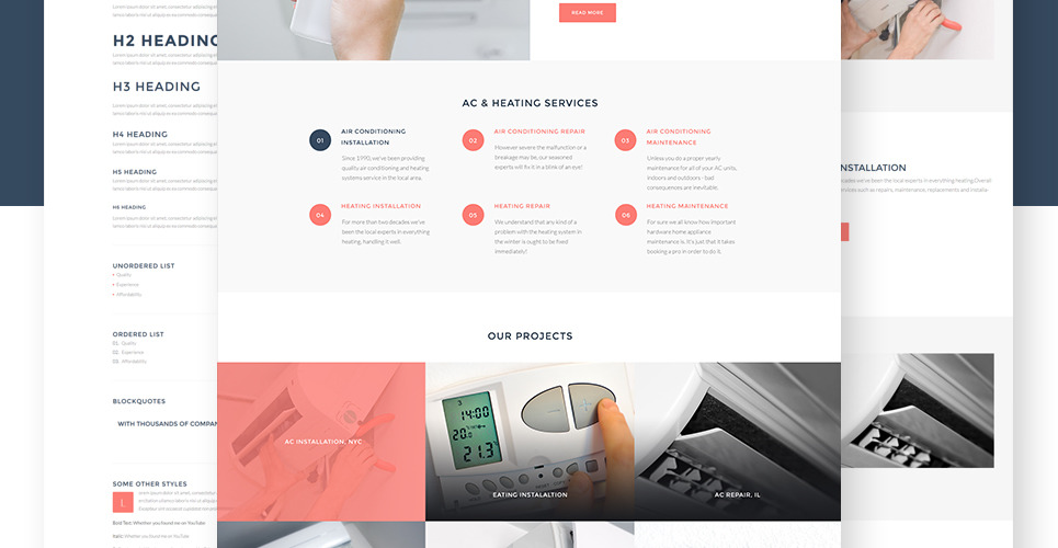 The theme was custom-made for hvac, cooling and heating, furnace, heat pump, refrigeration, air conditioning, maintenance services, business and services, medical, real estate, design and photography, cars and motorcycles sites. |