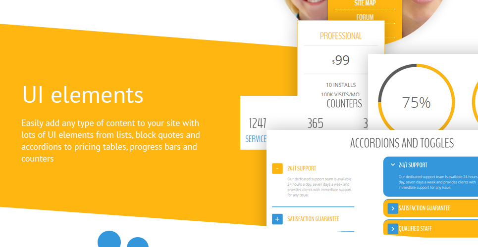 Admin Panel, Advanced Theme Options, Blog, Bootstrap, Dropdown Menu, Forum, Gallery, Google map, HTML 5, HTML plus JS, JQuery, Portfolio, Quickstart Package, Responsive, Retina Ready, Sample content, Tabs |