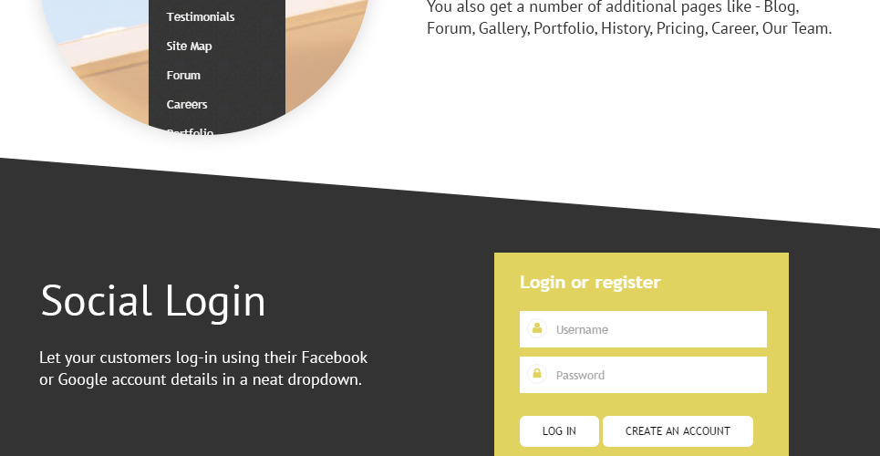 Admin Panel, Advanced Theme Options, Blog, Bootstrap, Dropdown Menu, Forum, Gallery, Google map, HTML 5, HTML plus JS, JQuery, Portfolio, Quickstart Package, Responsive, Sample content, Tabs |
