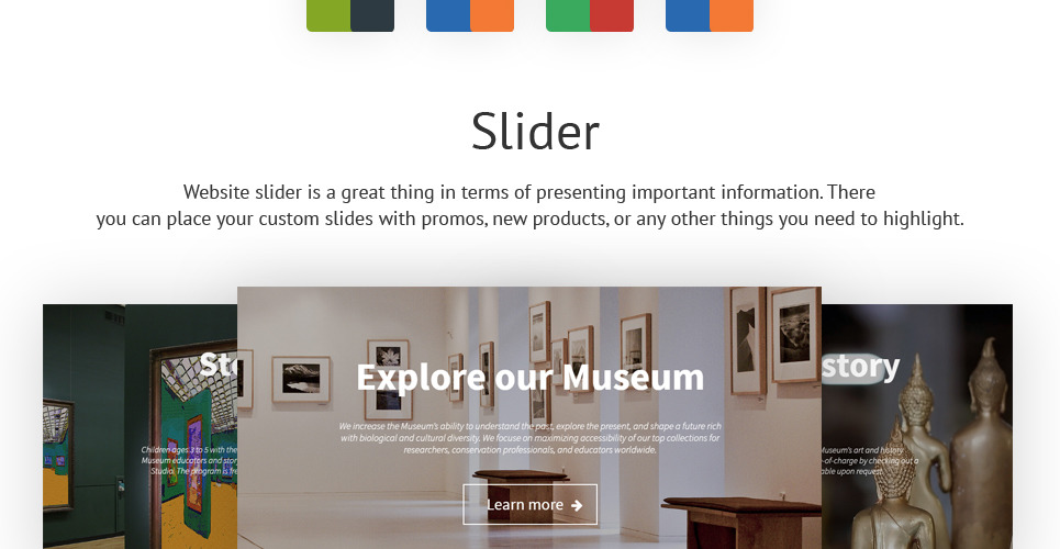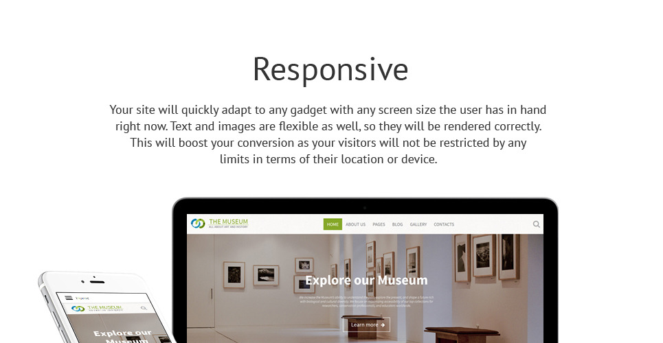 The template was custom-made for museum, exhibit, exhibition, art, history, and society & culture, business and services websites. |