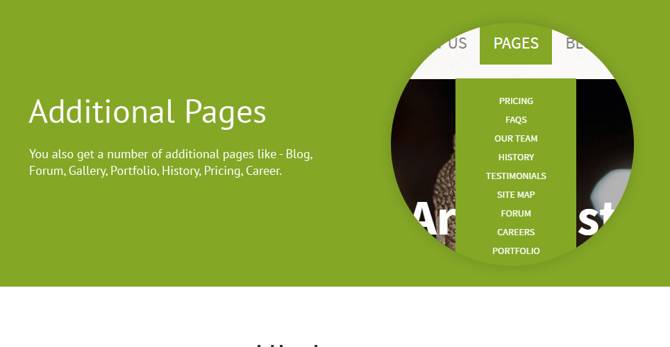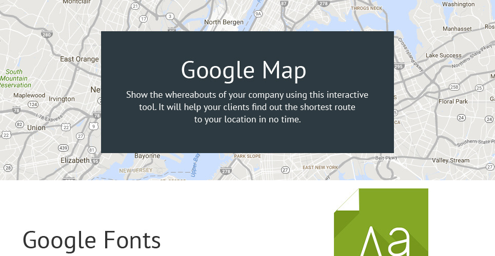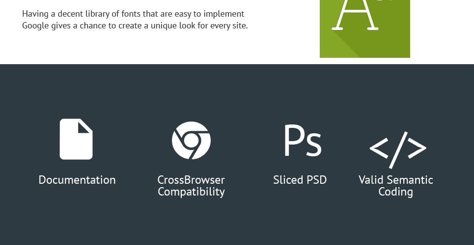 Admin Panel, Advanced Theme Options, Blog, Bootstrap, Dropdown Menu, Forum, Gallery, Google map, HTML 5, HTML plus JS, JQuery, Parallax, Quickstart Package, Responsive, Sample content, Sliced PSD, Tabs |