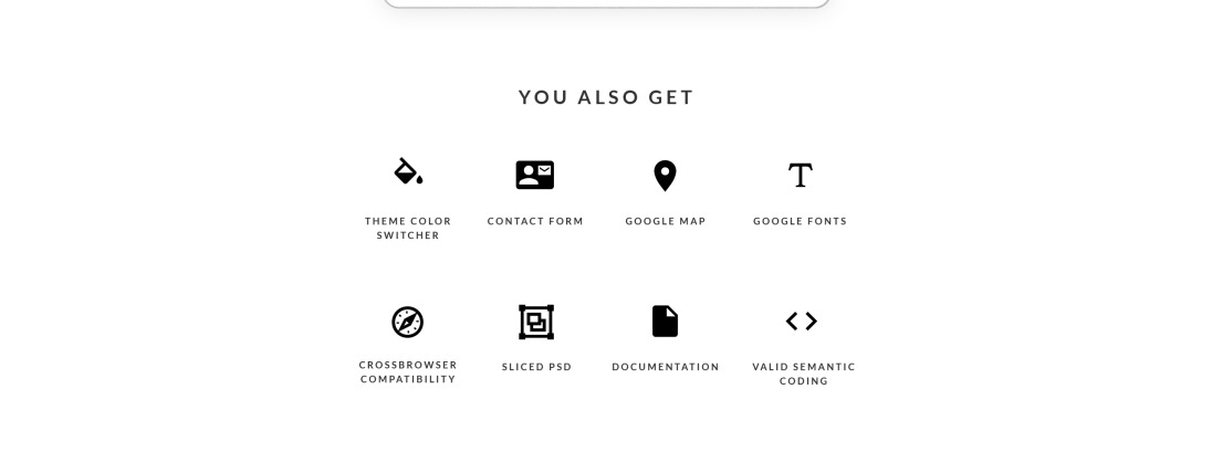 Admin Panel, Advanced Theme Options, Blog, Bootstrap, Dropdown Menu, Forum, Gallery, Google map, HTML 5, HTML plus JS, JQuery, Parallax, Quickstart Package, Responsive, Sample content, Tabs |