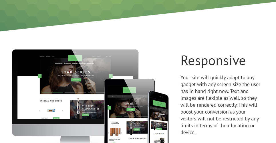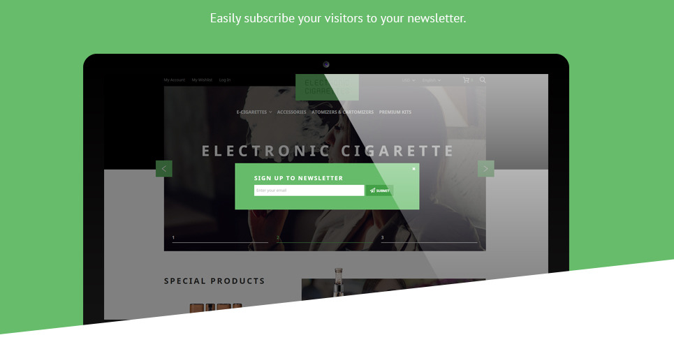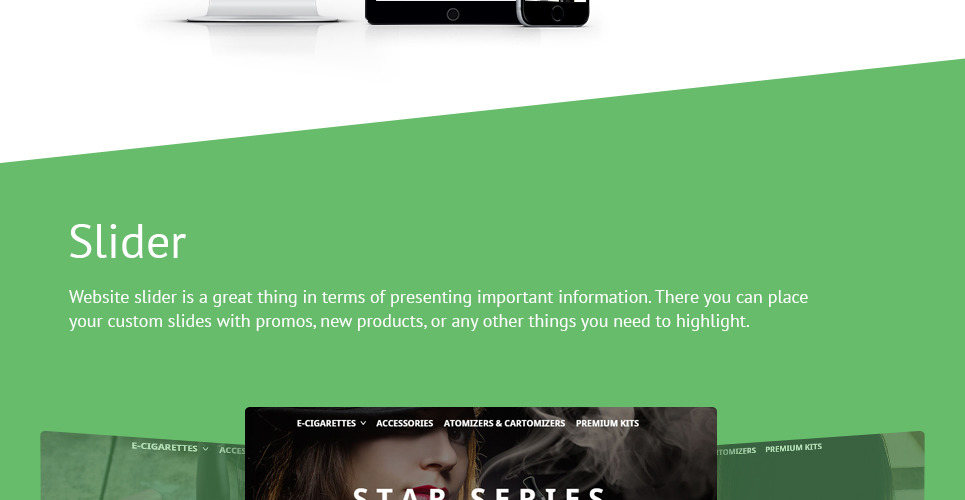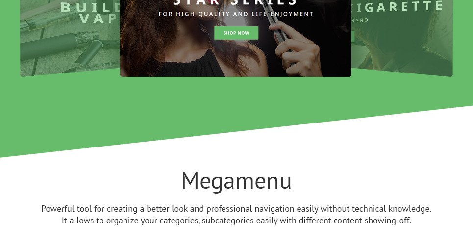 The theme is intended for tobacco, electronics, cars, sport, music, and book stores. |