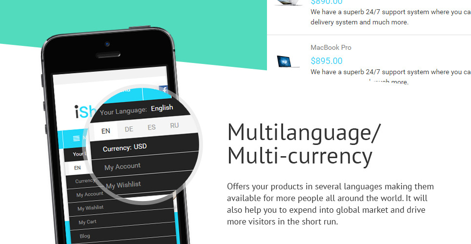 The theme is best suited for electronics, software, tools and equipment stores. |