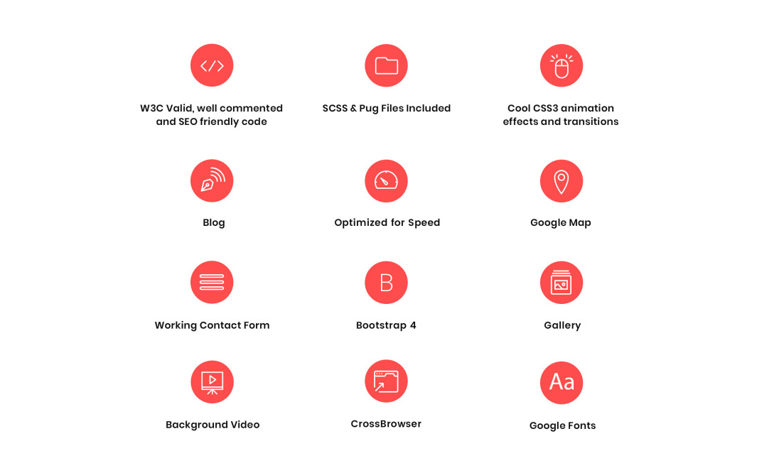 Bootstrap, Dropdown Menu, Gallery, Google map, HTML 5, HTML plus JS, JQuery, Premium, Pro, Responsive, Search Engine Friendly, Sliced PSD |