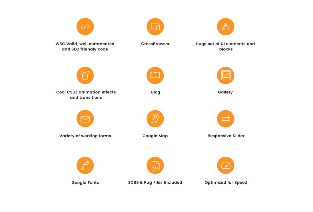 Bootstrap, Dropdown Menu, Gallery, Google map, HTML 5, HTML plus JS, JQuery, Parallax, Premium, Pro, Responsive, Search Engine Friendly, Sliced PSD, Tabs |