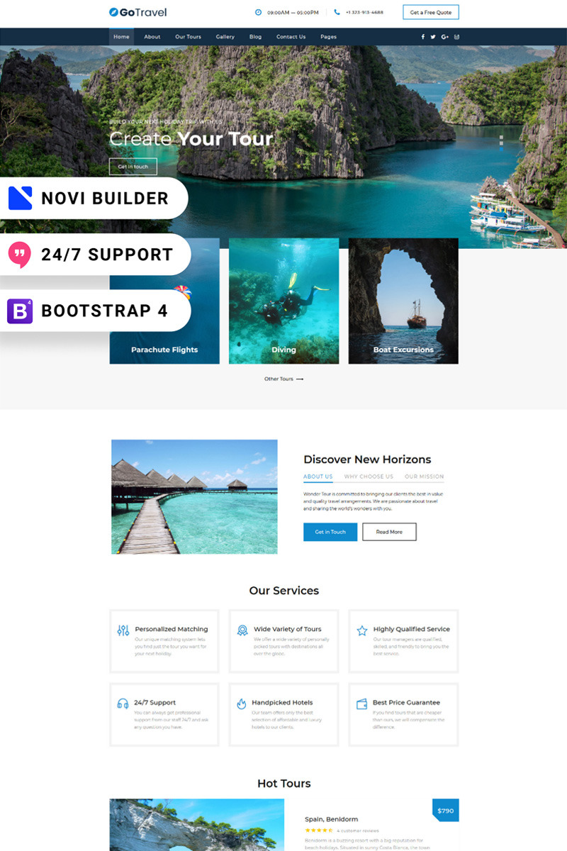 Bootstrap, Dropdown Menu, Gallery, Google map, HTML 5, HTML plus JS, JQuery, Novi Builder, Parallax, Premium, Pro, Responsive, Search Engine Friendly, Tabs |