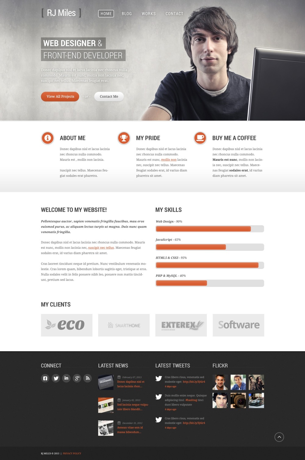 The contemporary template is perfect for designer portfolio and other sites of this kind aimed at presenting the web designer’s works. |