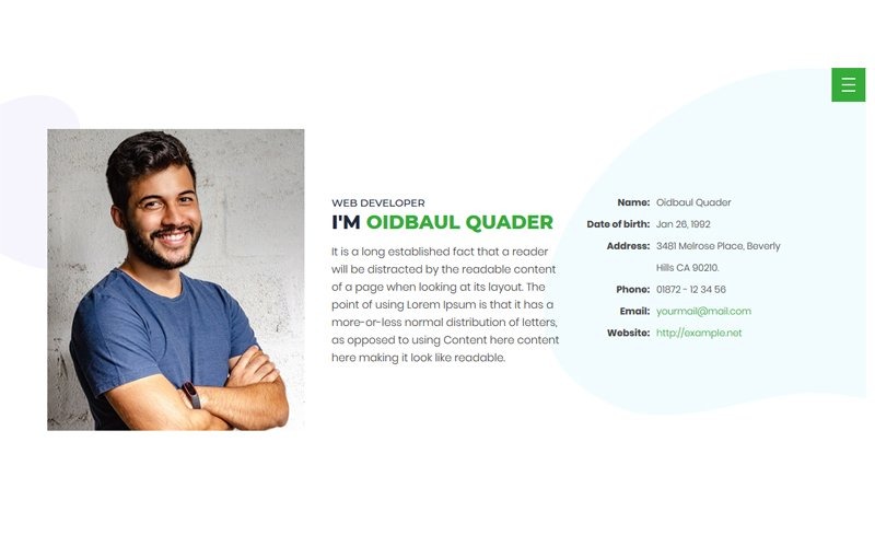 blog, bootstrap, clean, creative, cv, designer, developer, modern, personal, profile, responsive, resume, vcard |