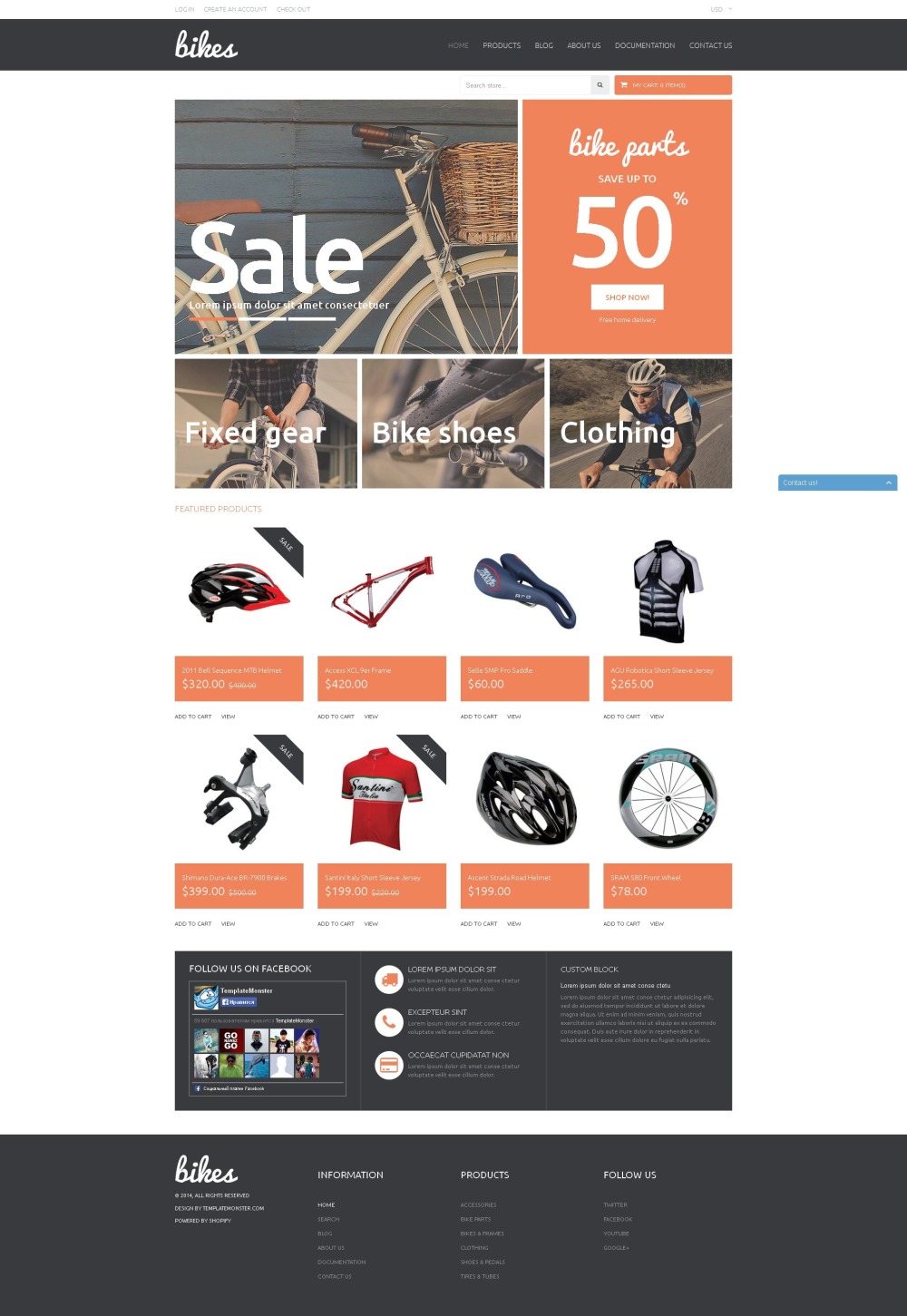 The theme is intended for bike, cars, and sports shops. |